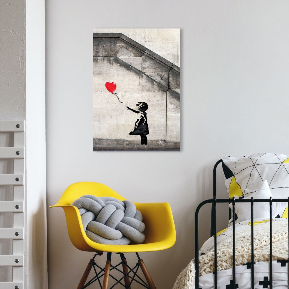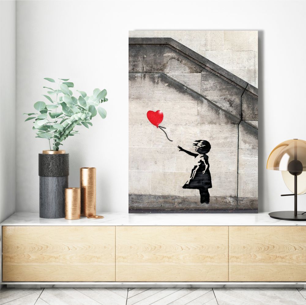 Quadro Banksy Bambina con Palloncino su tela, un’icona del design moderno in formato verticale. Stampa d’arte di alta qualità, Made in Italy e pronta per arredare il tuo Soggiorno. Aggiungi il tocco d’artista che stavi cercando.