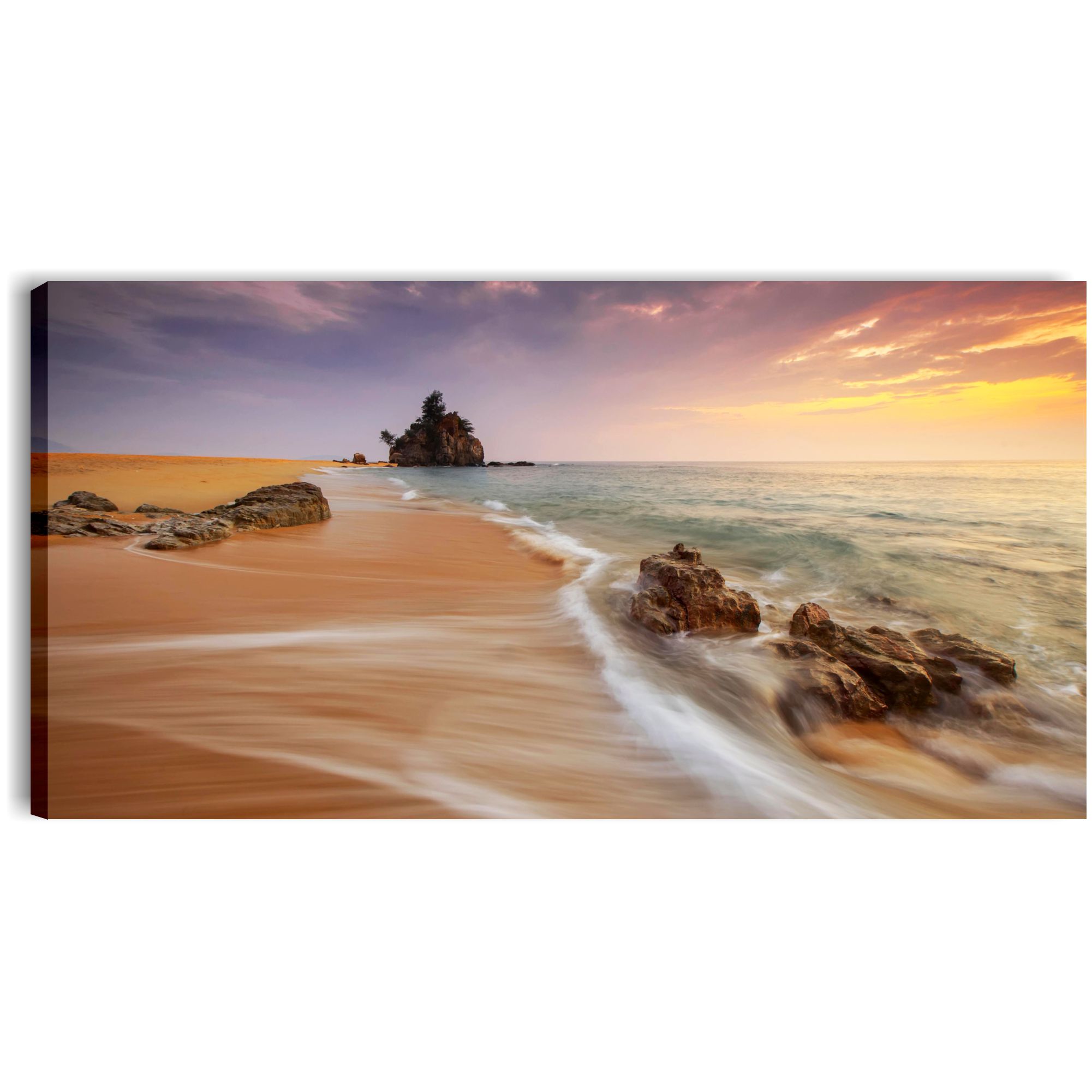 quadro mare tramonto stampa su tela – spiaggia sabbia dorata e isolotto Made in Italy