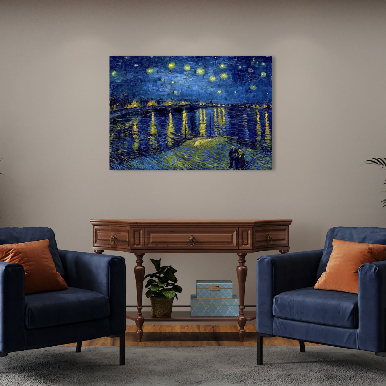 Notte Stellata sul Rodano di Van Gogh riprodotta su tela, un complemento d’arredo di sicuro impatto.